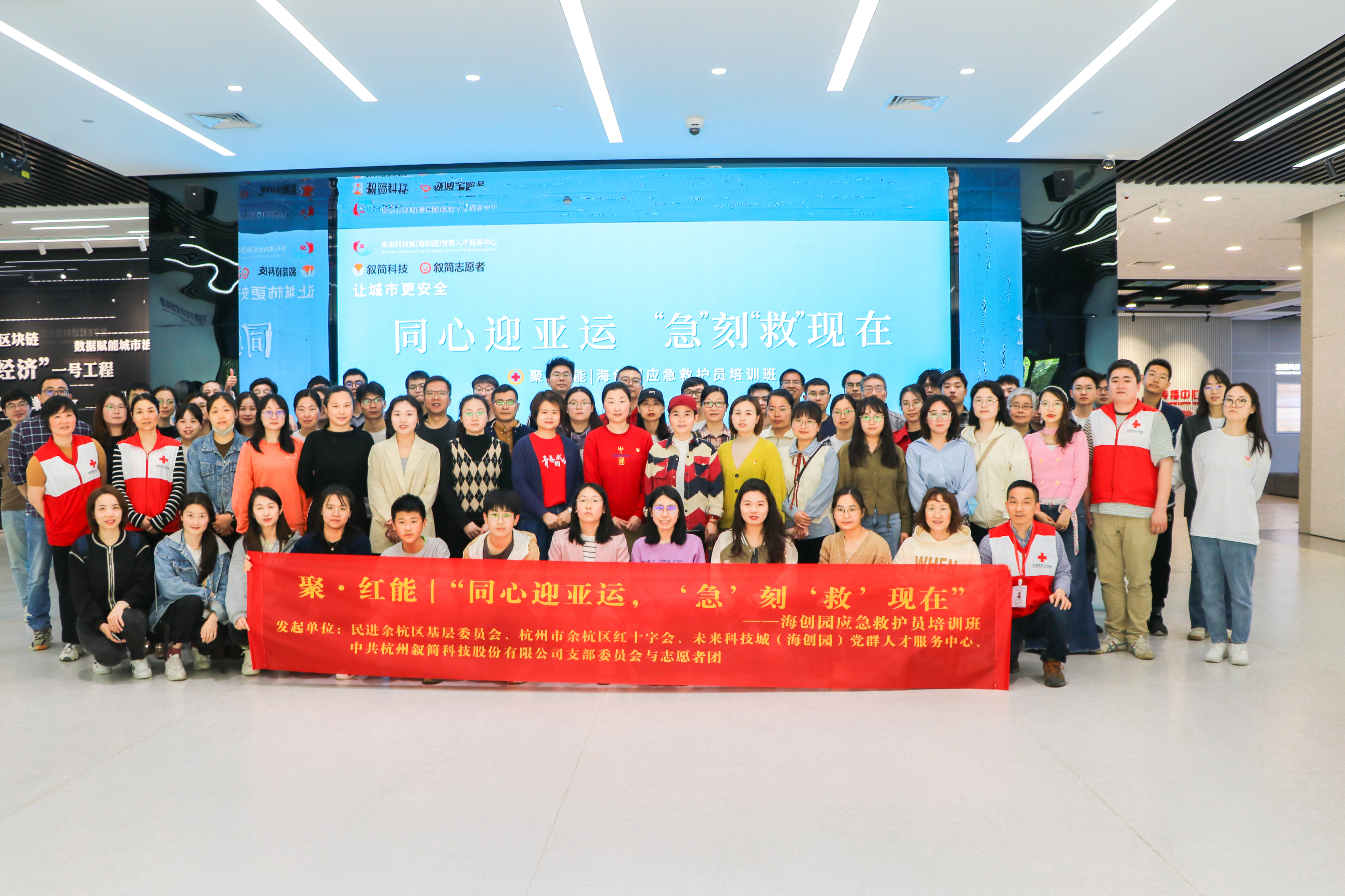 2023年4月15日,由民進(jìn)余杭區(qū)基層委員會(huì)、杭州市余杭區(qū)紅十字會(huì)、未來(lái)科技城(海創(chuàng)園)黨群人才服務(wù)中心、中共杭州敘簡(jiǎn)科技股份有限公司支部委員會(huì)與志愿者團(tuán)發(fā)起,開(kāi)設(shè)了“同心迎亞運(yùn),‘急’刻‘救’現(xiàn)在”——海創(chuàng)園應(yīng)急救護(hù)員培訓(xùn)班。