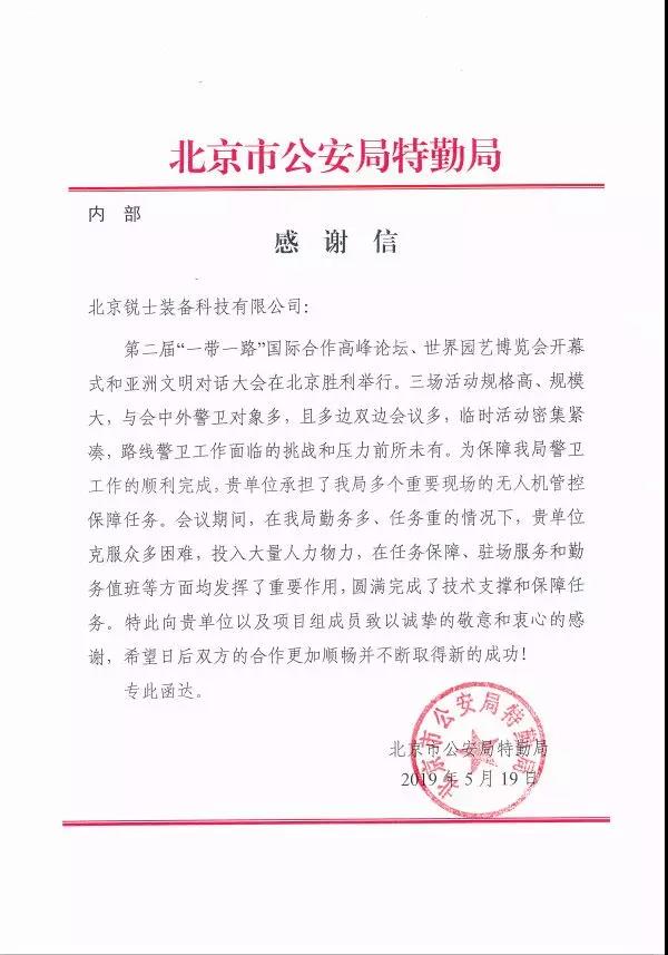 銳士裝備為第二屆“一帶一路”國際合作高峰論壇、世界園藝博覽會開幕式 和亞洲文明對話大會提供低空安保保障
