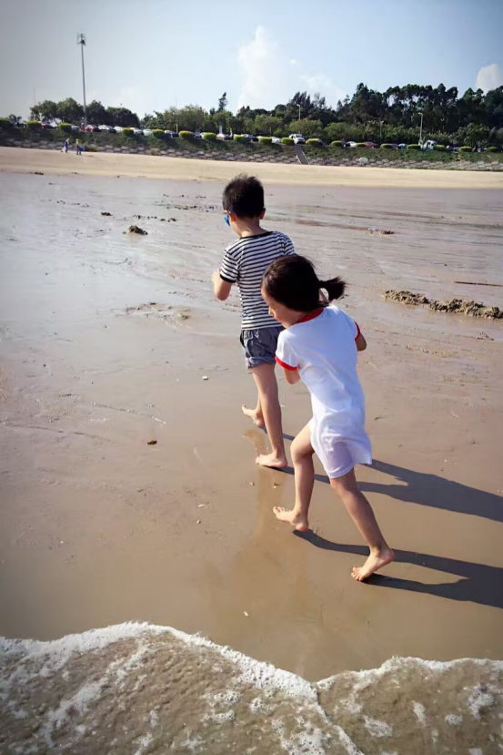 之后,我们来到海边,卷起裤管、脱掉鞋子,与沙滩和海水进行亲密的肌肤之亲,沙粒是那样的细软,海水是那样的沁凉,随着一阵阵的快意欢笑,大家的身心都在尽情的释放。