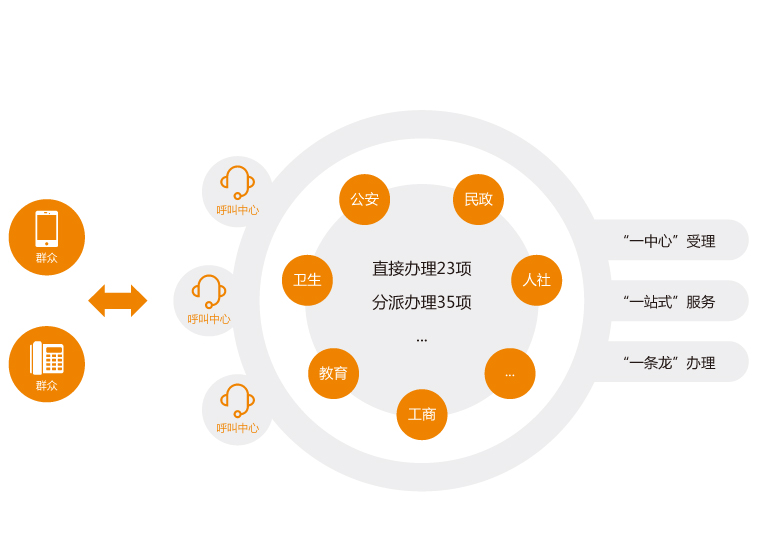 一站式指挥中心集智慧城市日常运营管理中心和应急指挥中心为一体,具备融合接入、集中管理、呼叫中心、服务保障和指挥调度等基础系统;整合了政府各部门的视频、音频、数据、通讯录等资源;实现了政府各部门联席办公、会议会商、集中接报受理、协同指挥等应用。