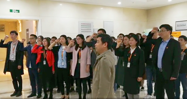 本次会议最让人心血澎湃的一个环节——“我宣誓”,入党誓词是《中国共产党章程》的重要内容,也是党员为党奋斗终身、献身党的事业的誓言和座右铭。会议中大家一起观看了一首入党誓词歌“我宣誓”MTV,以激昂的旋律和震撼的画面,把短短80个字的入党誓词演绎得气势恢宏,让人热血沸腾,紧接着由海创园园区党委副书记罗洪昌带领支部全体党员重温入党宣誓。叙简科技全体党员,不忘入党初心,坚定前行……