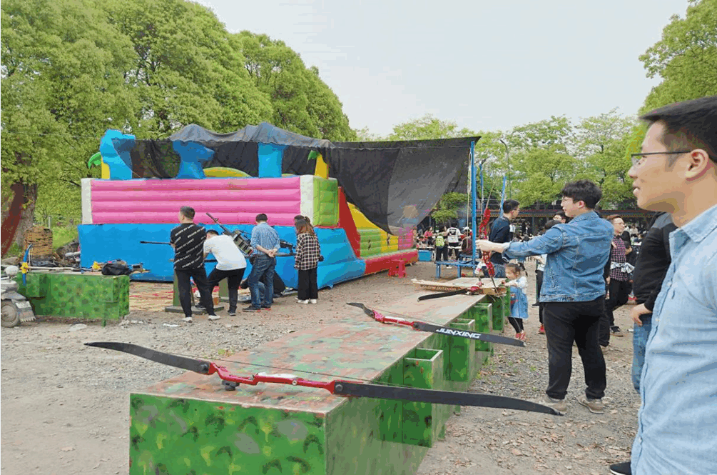 春光明媚阳光遍布的地方暖洋洋的,进入农庄后大家一起听过所有的项目介绍后,进行自愿分组选择自己喜欢的活动和小伙伴一起玩起来~有钓鱼、烧烤、骑马、桌游、射箭、攀岩等十分丰富的项目,当然最惬意的就是坐在草坪野餐垫或者沙滩椅上晒太阳聊天啦~呐,这边捕捉到一枚小伙伴在玩射箭——嘿,小伙子,手就不要抖啦,瞄准点喔~~~