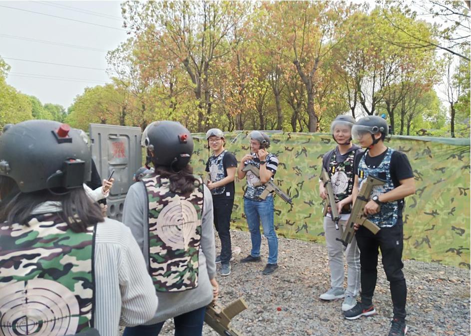自由活动时间结束后,大家就要开始搞大事情了——真人CS!教练说了:嗯,大家不要长在地上了,子弹要上膛,眼睛要瞄准,我们要做彼此的“好”队友!