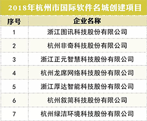 近日,杭州市经济和信息化局正式发布《关于公布2018年杭州市国际软件名城创建项目名单的通知》(杭经信软件〔2019〕57号),我司成功入选杭州市国际软件名城创建项目。同期入选的还有浙江图讯科技股份有限公司、杭州非奇科技股份有限公司、浙江正元智慧科技股份有限公司等其他六家公司。