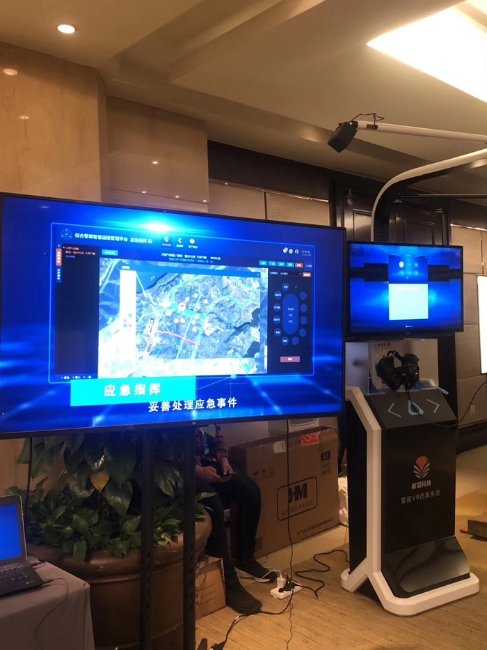 叙简科技作为本次论坛协办单位,在此次会议中详细展示了综合管廊统一管理平台以及综合管廊智慧仿真系统。综合管廊智慧仿真系统通过VR一体机进行演示,参观者通过佩戴VR设备进行体验,仿佛亲临管廊内部,通过行走、跳跃、攀爬等行动及360°视角切换使得体验者对管廊内部设施及运维情况一目了然,这一新颖的形式在展会现场吸引了很多行业同仁们的注意,受到广泛好评。