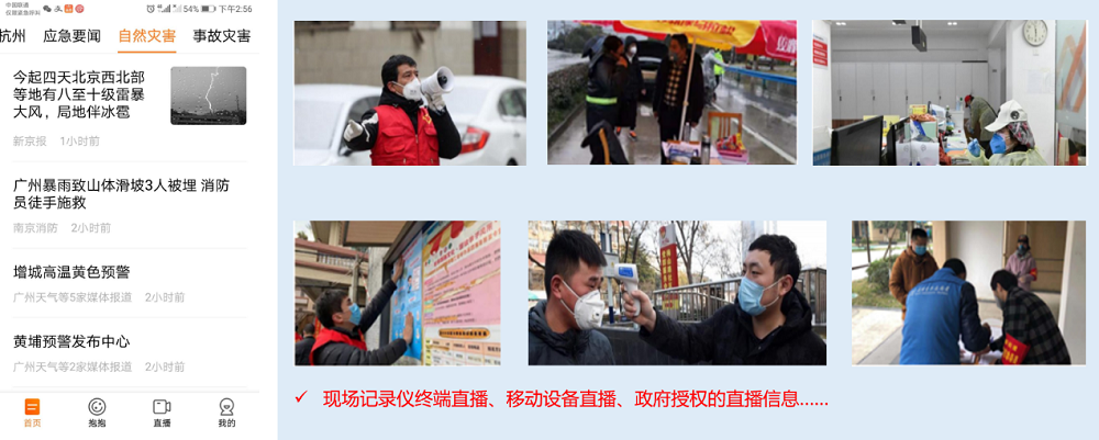 现场记录仪终端直播、移动设备直播、政府授权的直播信息……