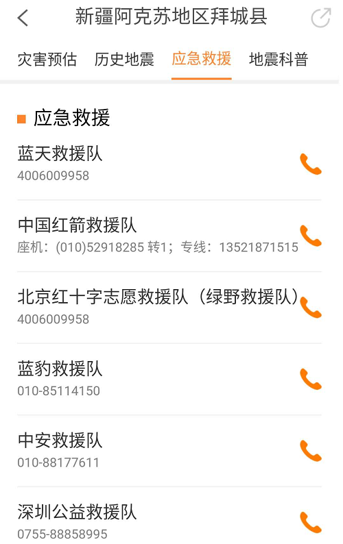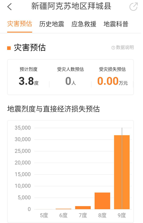 通过应急速报APP的地震实时播报模块,我们在手机端也可以第一时间获知有关地震的各种具体信息,包括地理位置、经纬度、震级、震源深度、预计烈度、受灾人数预估、受灾损失预估等。同时,还获取关联的一些周边信息,如该区域的历史地震信息、民间救援组织、相关的防护自救科普知识等。