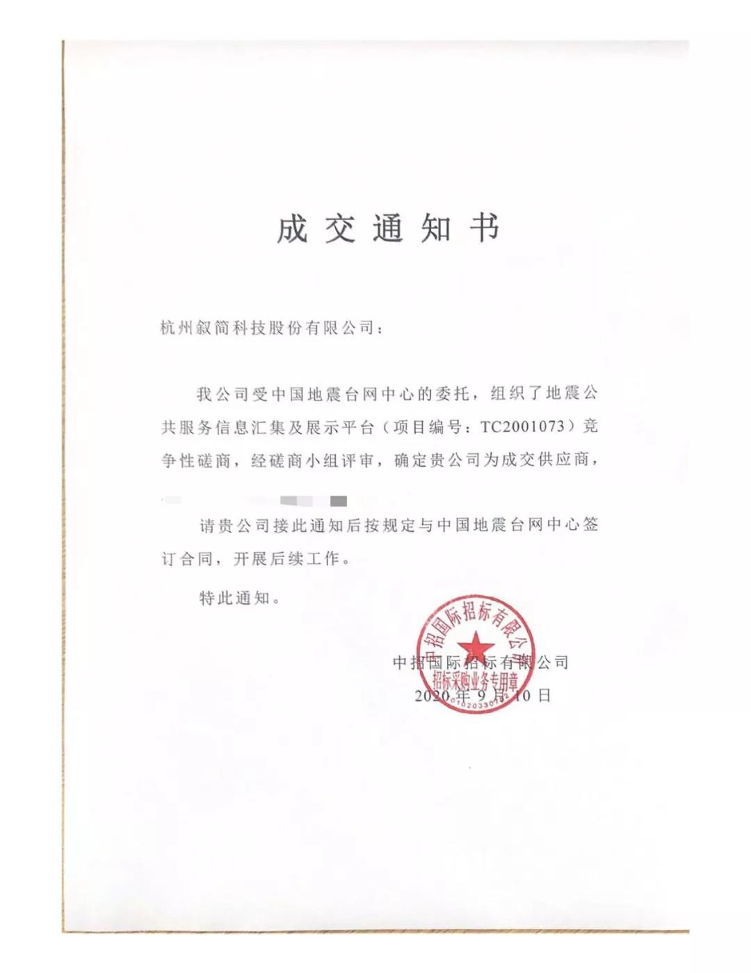 此外,叙简科技承建中国地震台网中心地震站网全流程一体化监控平台(三期)项目建设,中国地震局工程力学研究所强震动记录数据自动处理系统项目建设,中国地震局第一监测中心全国地震监测专业设备全生命周期运维管理系统(一期)项目建设等省部级项目,并且在专业性和整体服务方面也是得到用户的充分肯定!