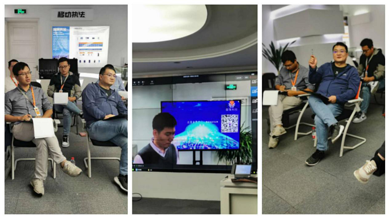 在本次大赛中,外地业务中心有三位同事以远程直播的方式给大家展示了他们的决赛作品,分别为成都业务中心的方超和蒋洁,北京业务中心的饶伟。双层屏幕也抵挡不了演讲的魅力。