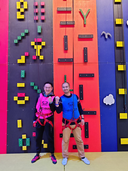 此次活动由公司成都业务中心策划组织,与拓展培训团队合作,精心挑选设定了经典而富有挑战和意义的项目,包括:攀岩比赛、魔鬼滑梯、宝岛争夺战、旱地冰壶比赛等,团队经随机组合划分为粉、蓝两队,比赛在每个队伍团队展示结束后正式拉开了序幕。