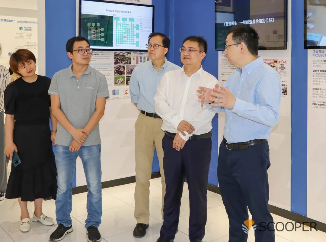 浙大控制学院侯迪波院长对叙简科技金国庆董事长一行的到来表示热烈欢迎,并带领叙简团队参观了浙江大学数名教授领衔创作的12个机器人工作坊,围绕基地在机器人和人工智能领域的前沿技术、科研成果作了简要介绍。