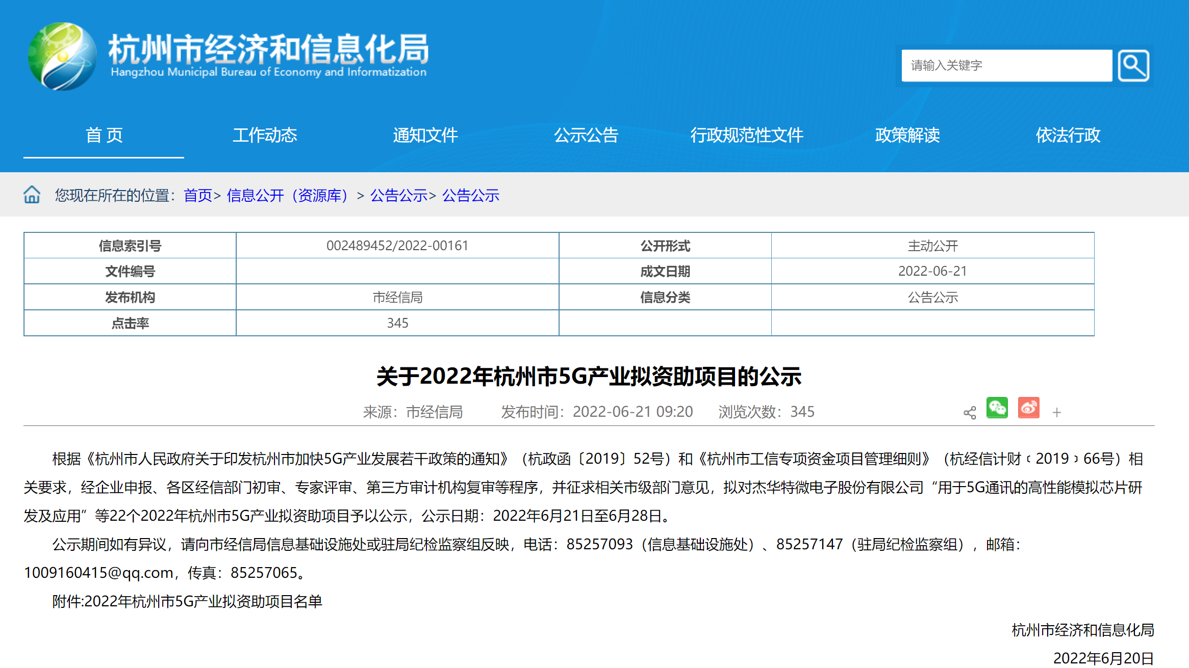 根据《杭州市人民政府关于印发杭州市加快5G产业发展若干政策的通知》(杭政函〔2019〕52号)和《杭州市工信专项资金项目管理细则》(杭经信计财﹝2019﹞66号)相关要求,叙简科技积极申报,公司以“基于治理5G云端智慧安全防控一体化平台的研发”项目,通过余杭区初审推荐、专家评审、第三方审计机构审计和复审,市经信局处市联审和党组会审计等程序,于2022年6月20日获得了“杭州市经济和信息化局”的立项支持并予以公示。