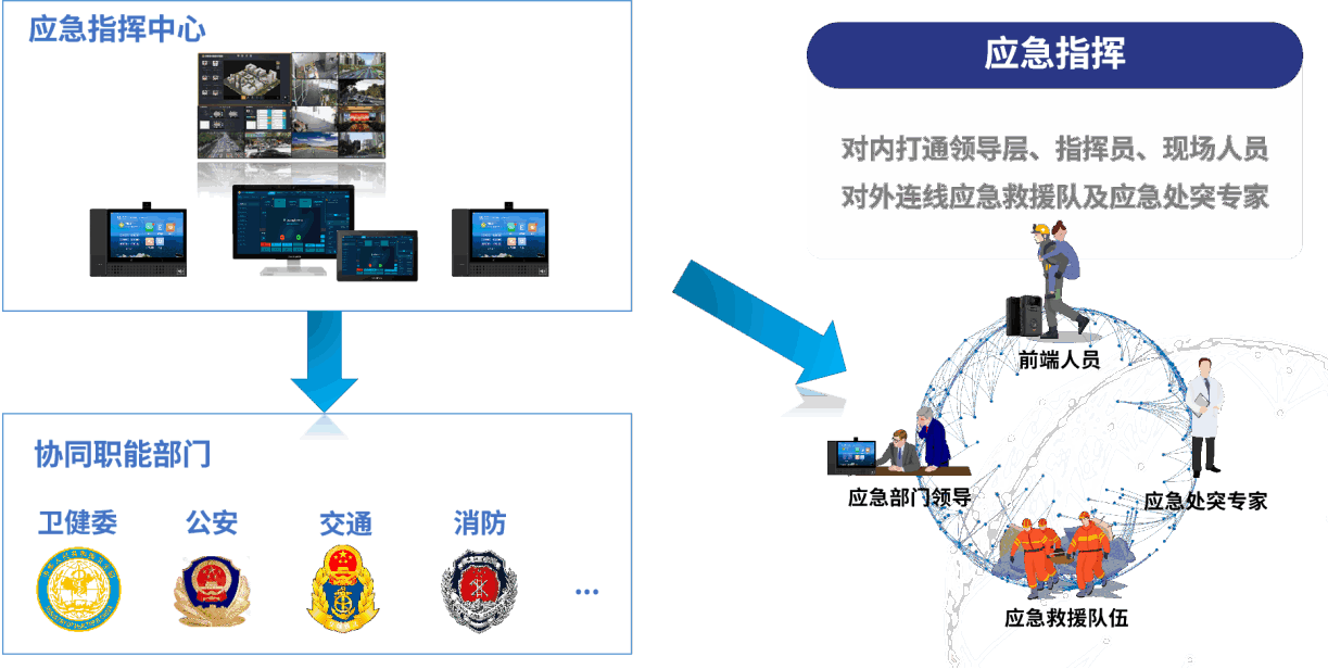 桌面终端可作为应急处置协同终端,部署于应急指挥中心、各相关职能部门办公室。在发生事件时,协同应急指挥中心、各职能部门,对内打通领导层、指挥员、现场人员沟通渠道,对外连线应急救援队及应急处突专家。同时,桌面终端具备一键辅助调度功能,领导在办公室与外线成员通话过程中,能够一键将语音切换至指挥中心广播,并拉入视频会议系统中,形成快速的指挥决策会议。