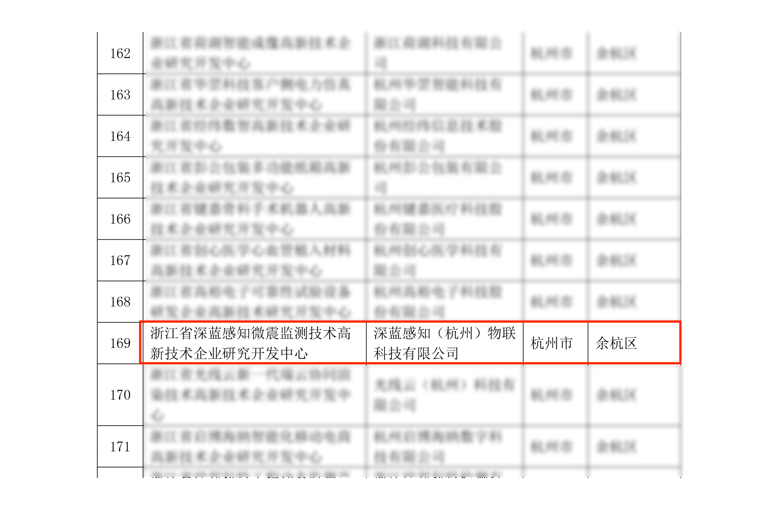 浙江省深蓝感知微震监测技术高新技术企业研究开发中心