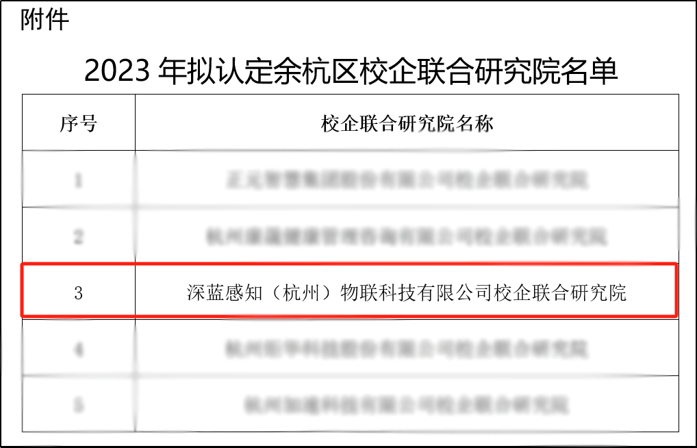近日,余杭区科技局根据《余杭区校企联合研究院管理办法(试行)》(余科〔2019〕25号),经审核并综合考量承担企业研发条件与能力、合作高校院所水平、研究院建设水平等,认定5家校企联合研究院为余杭区校企联合研究院,深蓝感知(杭州)物联科技有限公司校企联合研究院(以下简称“深蓝感知校企联合研究院”)入选。