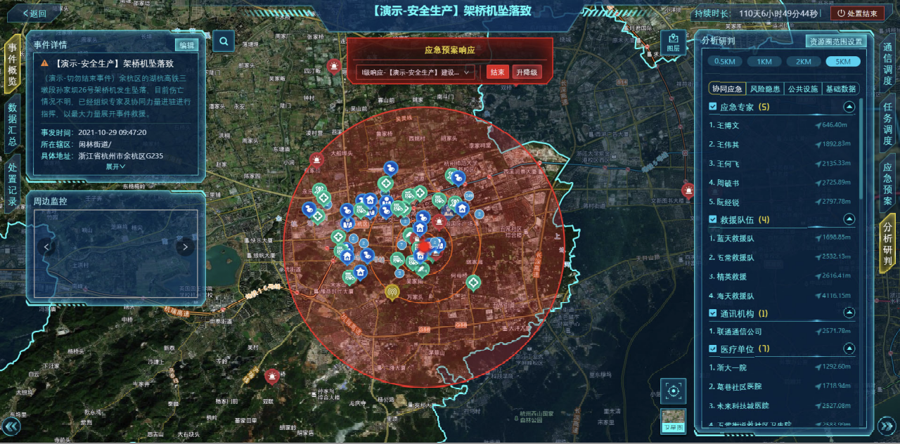 基于GIS一張圖,實現(xiàn)事件、保障資源、救援量的圖上指揮,結(jié)合各類音視頻終端設(shè)備,直達事發(fā)現(xiàn)場。