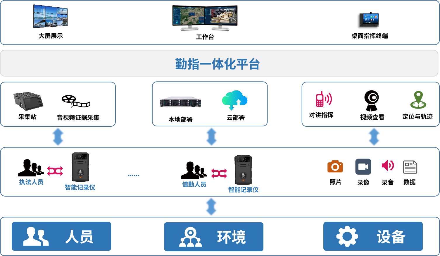 勤指一體化平臺(tái)以勤務(wù)指揮數(shù)字化、可視化、智能化應(yīng)用需求為導(dǎo)向,充分整合、共享數(shù)據(jù)信息,集現(xiàn)場(chǎng)監(jiān)督、可視指揮、集群對(duì)講、留痕記錄等功能于一體,打造全面覆蓋有機(jī)銜接、閉環(huán)管理的全流程記錄鏈條,包含實(shí)時(shí)指揮、視頻監(jiān)控、設(shè)備管理、統(tǒng)計(jì)分析等功能模塊,同時(shí)對(duì)外提供API開(kāi)發(fā)接口,可作為AI時(shí)代入口感知工具,提供前端感知采集的音視頻、位置信息等數(shù)據(jù),供第三方系統(tǒng)集成調(diào)用,著力實(shí)現(xiàn)“AI+”智慧監(jiān)管新模式。