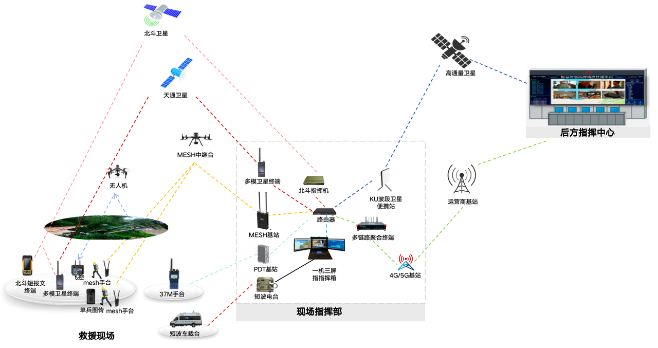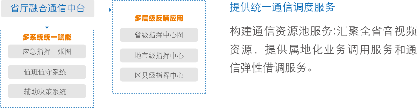 融合接入應(yīng)急管理部門各類通信系統(tǒng)及終端(包括但不限于公網(wǎng)電話系統(tǒng)、數(shù)字會議系統(tǒng)、370M無線通信系統(tǒng)、公網(wǎng)POC集群系統(tǒng)、應(yīng)急指揮視頻調(diào)度系統(tǒng)、視頻會議系統(tǒng)、VOLTE系統(tǒng)、視頻資源池、藍(lán)信平臺、北斗短報文系統(tǒng)、圖傳單兵、智能頭盔、無人機(jī)、布控球等),匯聚音視頻資源,為各類指揮業(yè)務(wù)系統(tǒng)提供統(tǒng)一通信服務(wù),為應(yīng)急管理部門日常通信和戰(zhàn)時的統(tǒng)一指揮提供基礎(chǔ)通信保障。