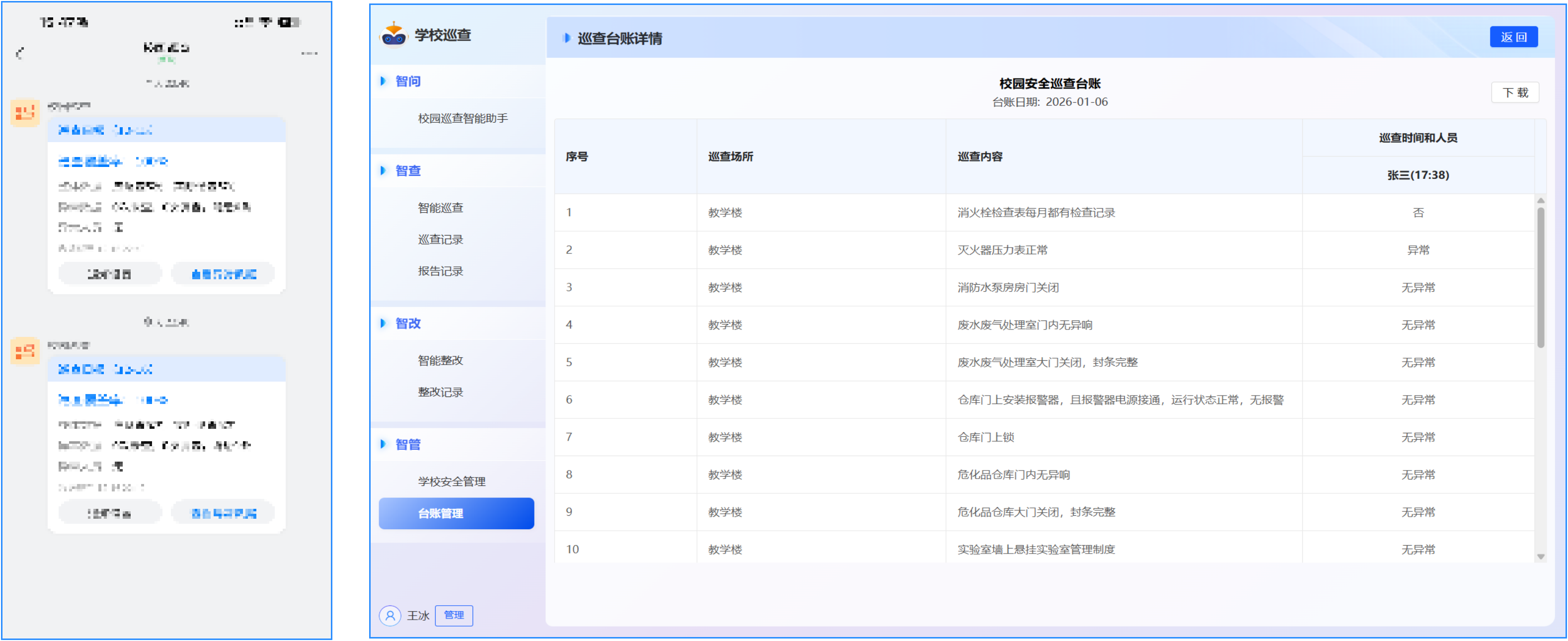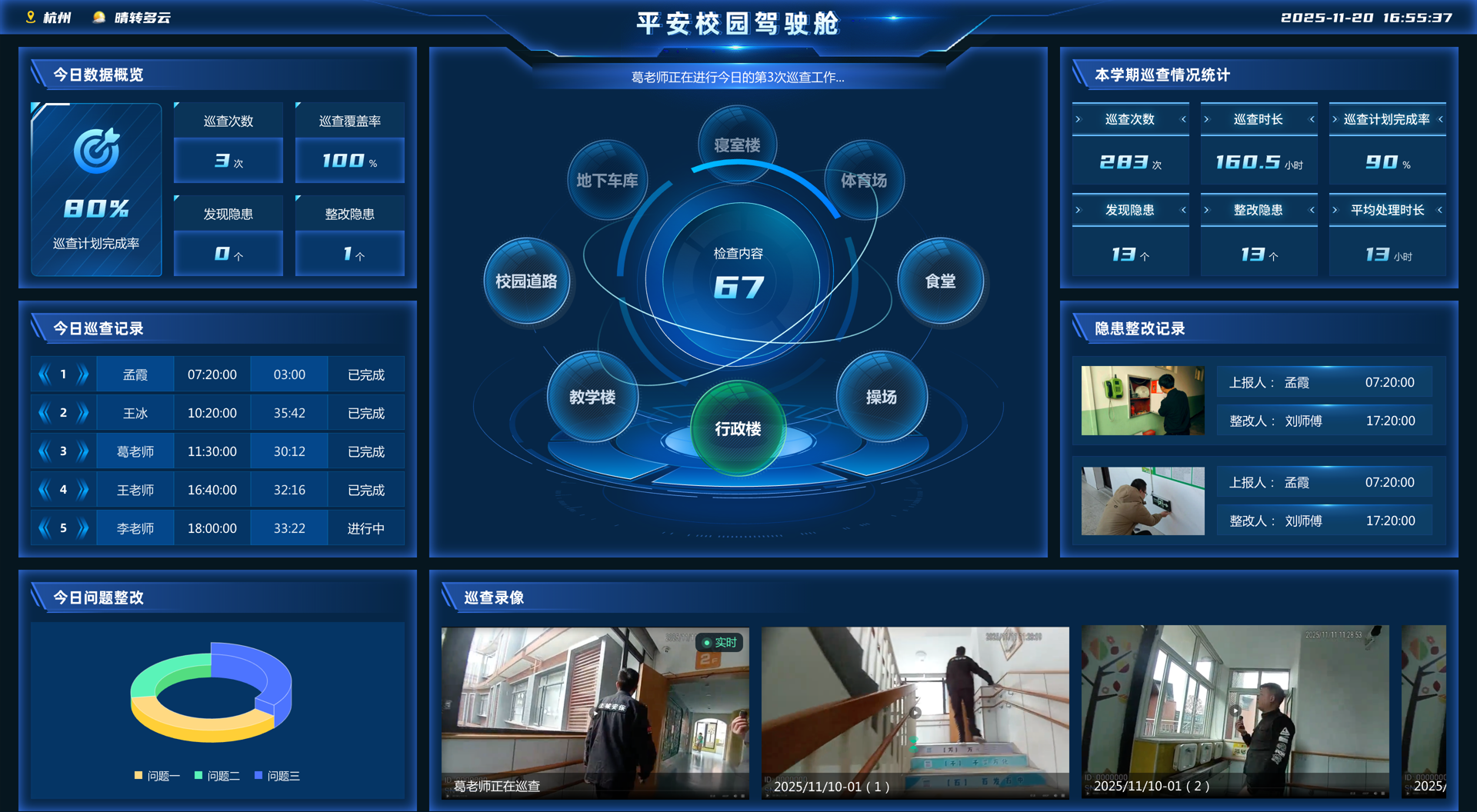 依托語音交互、規(guī)定動作視頻分析、定位軌跡跟蹤技術(shù),“巡小安” 可精準記錄巡查人員在崗情況,杜絕巡查缺位。同時通過視頻 / 圖片自動識別判斷隱患,實現(xiàn)巡查點位全覆蓋、隱患排查無遺漏,從根本上解決傳統(tǒng)巡查 “到崗率難管控、隱患發(fā)現(xiàn)靠人力” 的痛點,筑牢校園安全第一道防線。