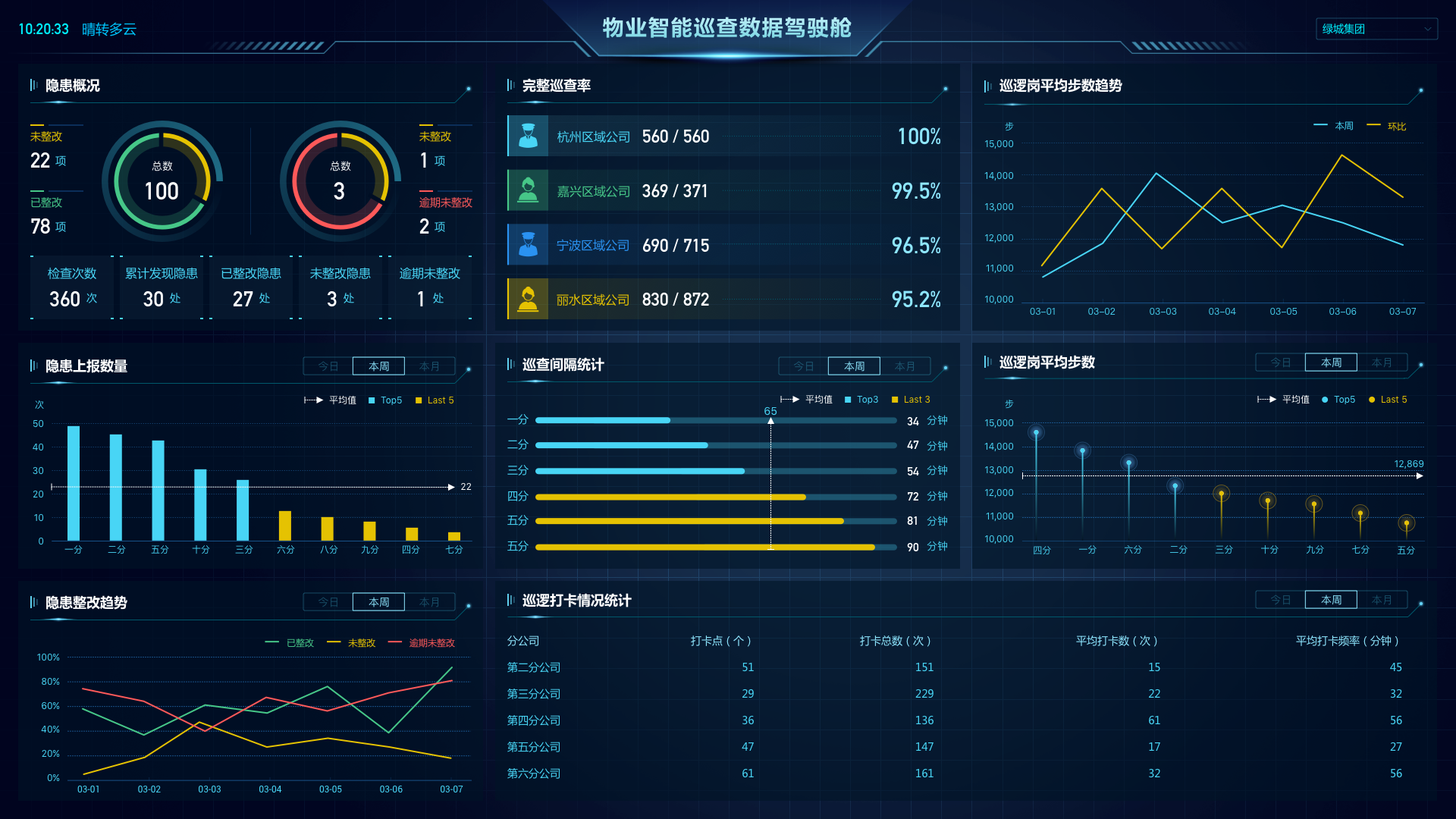 “安小護” 打造專業(yè)巡查數(shù)據(jù)可視化看板,將巡查成效、隱患數(shù)據(jù)、服務(wù)指標等全量量化呈現(xiàn),讓物業(yè)管理層直觀掌握運營情況?;诮K端積累的海量數(shù)據(jù),為企業(yè)后續(xù)構(gòu)建各崗位專屬 AI 模型提供支撐,助力物業(yè)實現(xiàn)數(shù)字化、智能化的持續(xù)運營與服務(wù)迭代。